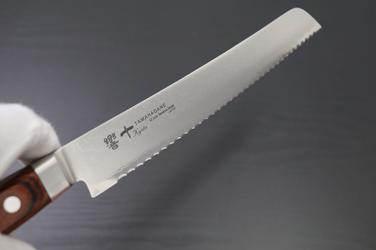 Free ship - Thương hiệu Tamahagane Cố Đô Kyoto 63 lớp Thép Damascus Dao cắt bánh mì chuyên dụng dao Nhật 230mm KP-1118