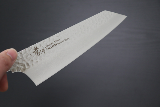 Features: The Kiritsuke knife has a long, slender blade with a slightly curved tip. This design gives the knife versatile cutting capabilities, from slicing meat to cutting sashimi. The Kiritsuke blade is hand-forged and highly sharp, making it easy and precise to cut a variety of foods.