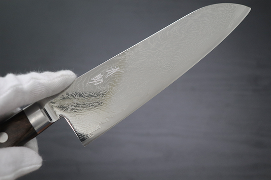 Dao Nhật cao cấp - Seisuke dao đa năng Santoku thép Damascus tráng gương gợn sóng 180mm