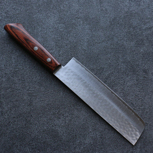 Free ship - Dao Nhật cao cấp - Kanetsune thép DSR-1K6 vân búa dao thái chuyên dụng Nakiri dao rèn thủ công 165mm chuôi dao gỗ ép đỏ