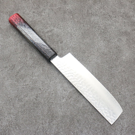 Thương hiệu Takeshi Saji Samurai loại Nomura mới thép SRS13 vân búa Dao cắt rau củ Nakiri 180MM chuôi dao hoa văn màu đỏ và màu đen nhựa Micarta