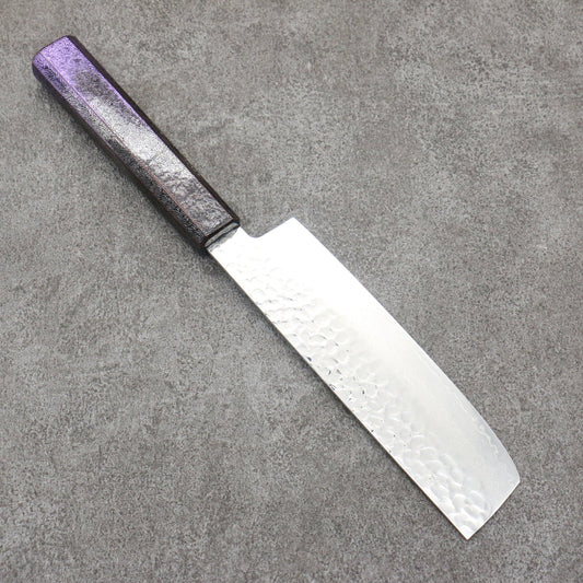 Thương hiệu Seisuke Thép trắng No.1 Đánh nhẵn bóng hoàn thiện Dao thái rau chuyên dụng Nakiri 165mm chuôi dao hoa văn sơn mài màu tím Kashiki