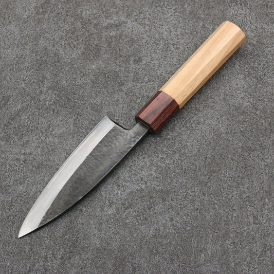 Thương hiệu Fukube Shinmai Sonko Aoni Thép rèn màu đen Hoàn thiện vân búa đục đặc biệt Dao Deba 120mm chuôi dao gỗ Zelkova Keyaki