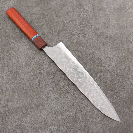 Thương hiệu Yoshimi Kato SG2 Thép Damascus đánh nhẵn bóng hoàn thiện Dao đa năng Gyuto 240mm chuôi dao gỗ paddock (có vòng màu ngọc lam)