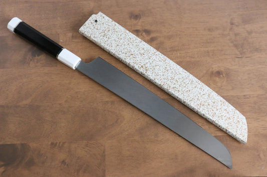Free ship - Thương hiệu Sakai Takayuki Đả ảnh Kageuchi Mizumoto yaki Thép trắng No.2 Tráng gương Dao thái cáshashimi chuyên dụng Yanagiba (cán tròn) dao Nhật 300mm chuôi dao gỗ Mun có đính đôi vòng Trâu nước ( làm từ thép không gỉ cao cấp) Có kèm bao