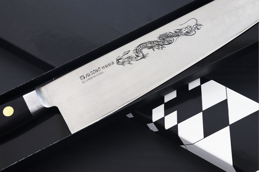 Free ship - Thương hiệu Misono Thép Thụy điển Chạm khắc hình Rồng Dao lọc gân chuyên dụng Sujihiki dao Nhật