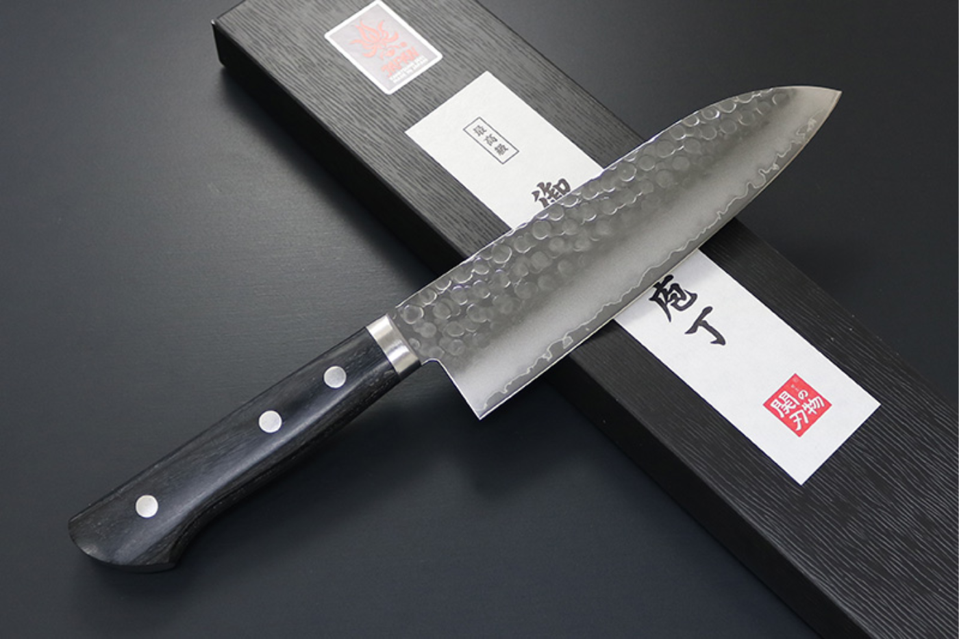 Free ship - Dao bếp đa năng Santoku cao cấp thương hiệu Kanetsune dao rèn thủ công thép VG1 165mm vân búa dao Nhật chuôi dao gỗ ép