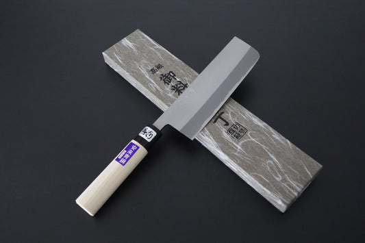 Free ship - Dao thái chuyên dụng Nakiri dao rèn thủ công thương hiệu Kanetsune thép xanh No.2 mặt dao được đánh bóng 165mm chuôi dao gỗ Mộc Lan
